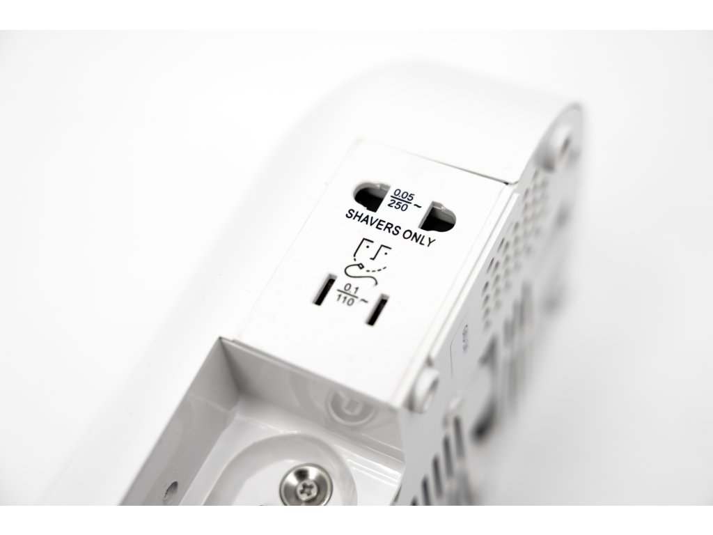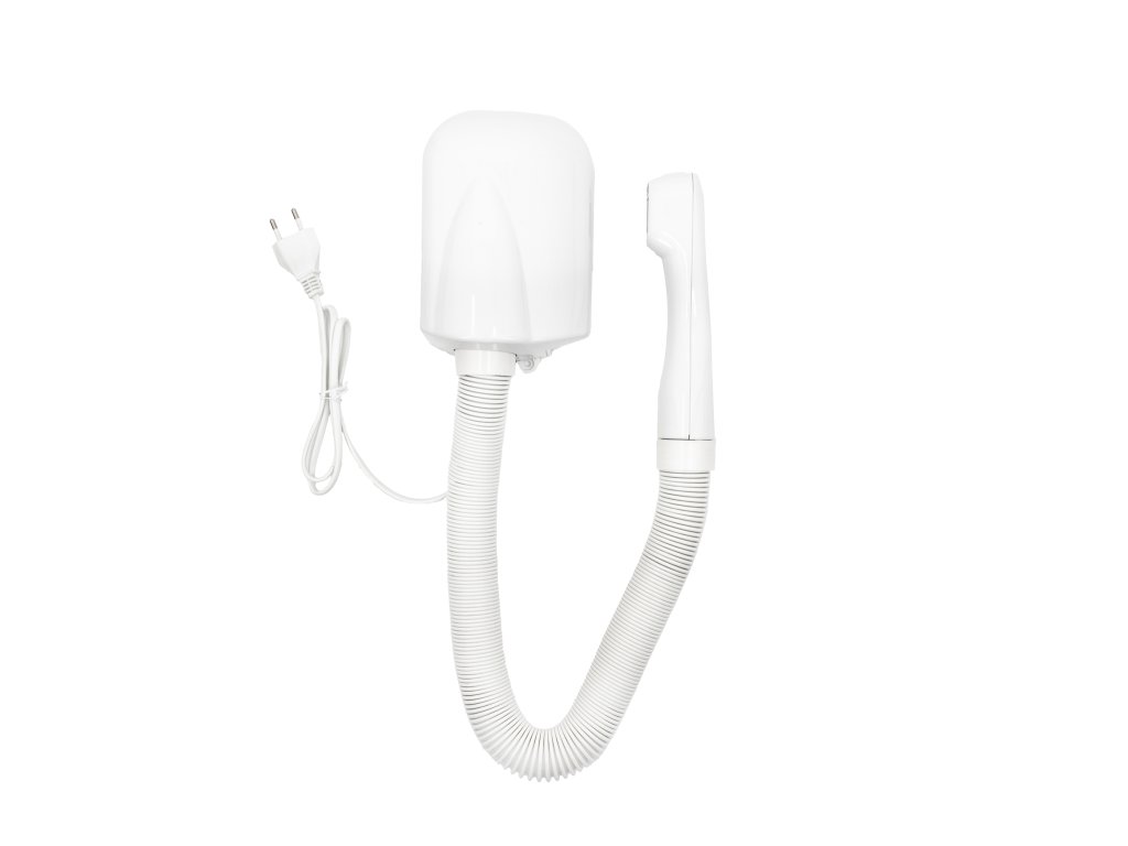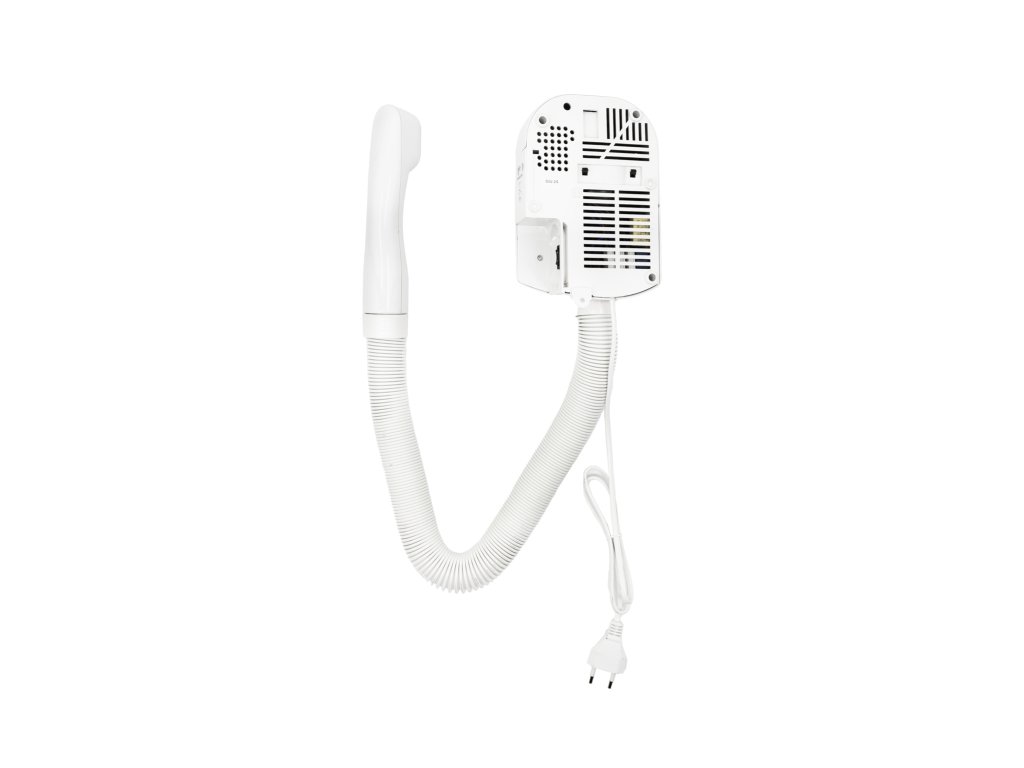 Hotelový fén s montáží na zeď a se zásuvkou pro holicí strojek (EU+USA, 115/230 V, omezovač odebíraného proudu - umožňuje provoz jen malých spotřebičů, jako jsou holicí strojky, nabíječky mobilních telefonů, ...), 2 rychlosti, 220 V - 240 V / 50 - 60 Hz, max. příkon 400 W (1. rychlost) / 700 W (2. rychlost), přepínač rychlosti na hlavní jednotce na zdi, automatické spuštění sejmutím fénovací hadice z magnetického držáku, bezpečnost CLASS II, dvojitá izolace, automatické vypnutí, tepelná pojistka a ochranný termostat, výkonný AC motor pro dlouhou životnost, tichý provoz, rozměry 180 mm výška × 125 mm šířka × 90 mm hloubka, hmotnost 1 kg, spodní hrana těla fénu musí být ve výšce min. 155 cm nad podlahou Upozornění: Hotelové fény jsou určené pro montáž do hotelových koupelen, koupelen v domácnostech a podobných prostor s menší provozní zátěží. Nejsou konstrukčně uzpůsobené k provozu např. ve veřejných bazénech, veřejných saunách nebo podobných prostorách s vyšším provozním zatížením – při použití v takovýchto prostorách nelze uplatnit reklamaci.Doplňkové parametry