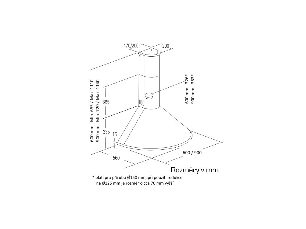 | Průměr odtahu: | 150 |