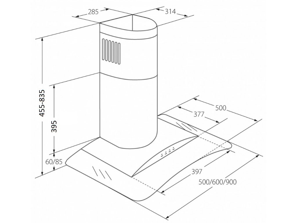 Komínová digestoř ke zdi, šíře 50 cm, nerez / tónované sklo, max. výkon 421 m³/h (5 Pa), hlučnost Lw 46 – 68 dB(A), 3 rychlosti, odsávací jednotky mají individuálně vyvažovanou turbínu, motory jsou opatřené vratnými tepelnými pojistkami (při přetížení motoru vypne, po jeho vychladnutí opět sepne), mechanické tlačítkové ovládání, kovové sendvičové tukové filtry, které lze mýt v myčce, možnost práce v odtahovém i recirkulačním režimu, výstupní průměr 150 mm, Výbava: úsporné LED osvětlení 2 × 2 W, zdarma redukce na 120 mm a zpětná klapkaDoplňkové parametry