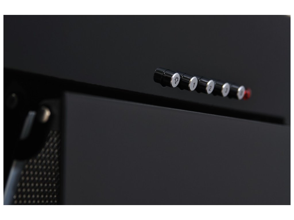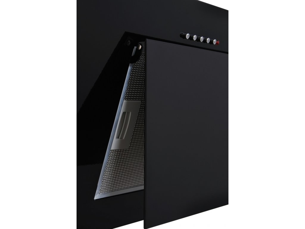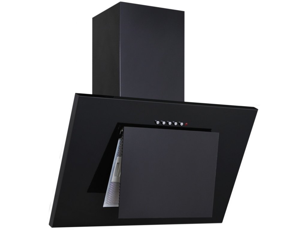 Komínová digestoř ke zdi, šíře 60 cm, černá / černé sklo, max. výkon 326 m³/h (15 Pa), hlučnost Lw 56 – 70 dB(A), 3 rychlosti, odsávací jednotky mají individuálně vyvažovanou turbínu, motory jsou opatřené vratnými tepelnými pojistkami (při přetížení motoru vypne, po jeho vychladnutí opět sepne), mechanické tlačítkové ovládání, kovové sendvičové tukové filtry, které lze mýt v myčce, možnost práce v odtahovém i recirkulačním režimu, výstupní průměr 120 mm, Výbava: úsporné LED osvětlení 2 × 2 W, Benefity: šikmá digestoř zvětšuje manipulační prostor nad varnou deskou a výrazně omezuje riziko bouchnutí se do hlavy o digestoř, šikmá digestoř může být instalovaná o 10-15 cm níž, než digestoře s rovnou spodní částí (snazší dostupnost ovládacích prvku i pro osoby menšího vzrůstu)Doplňkové parametry