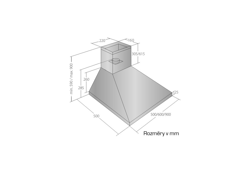 Komínová digestoř ke zdi, šíře 60 cm, černá, max. výkon 410 m3/h (5 Pa), hlučnost Lw 48 – 69 dB(A), 3 rychlosti, odsávací jednotky mají individuálně vyvažovanou turbínu, motory jsou opatřené vratnými tepelnými pojistkami (při přetížení motoru vypne, po jeho vychladnutí opět sepne), mechanické tlačítkové ovládání, kovové sendvičové tukové filtry, které lze mýt v myčce, možnost práce v odtahovém i recirkulačním režimu, výstupní průměr 150 mm, Výbava: úsporné LED osvětlení 2 × 2 W, zdarma redukce na 120 mm a zpětná klapkaDoplňkové parametry