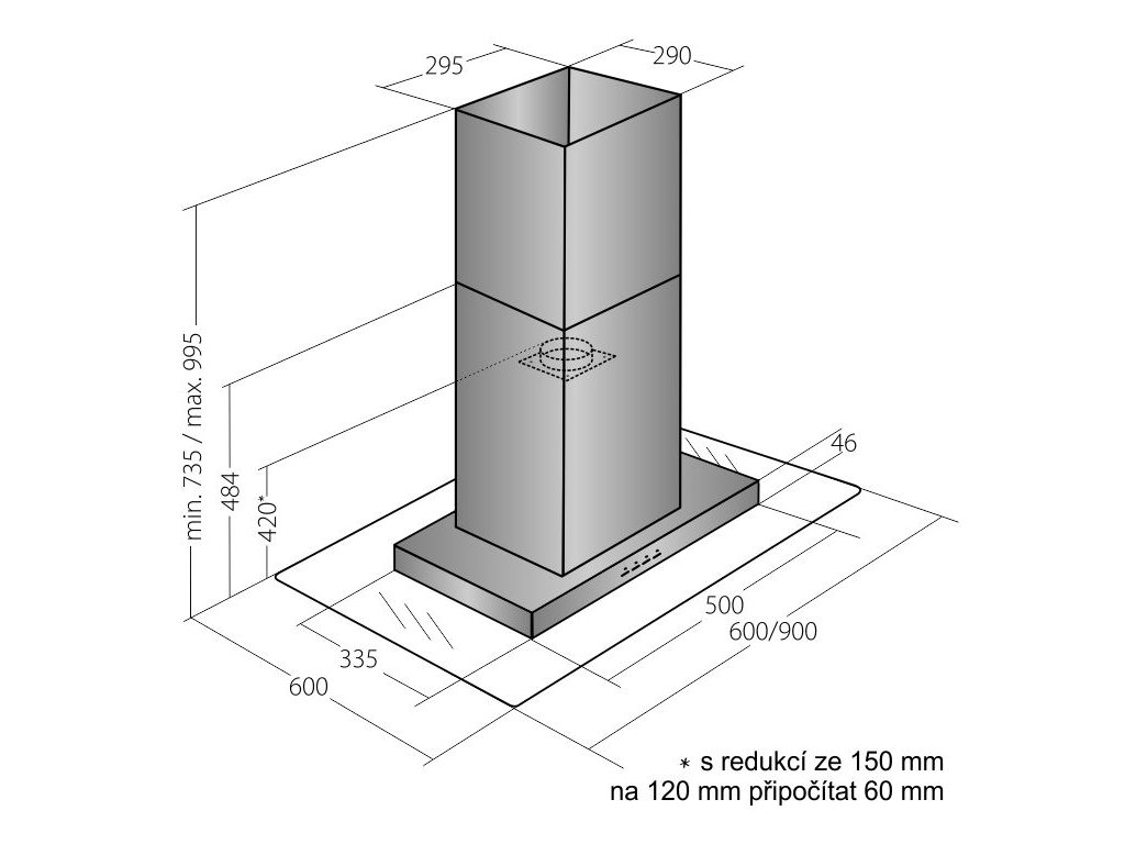 | Průměr odtahu: | 150, zdarma redukce 150 / 120 |