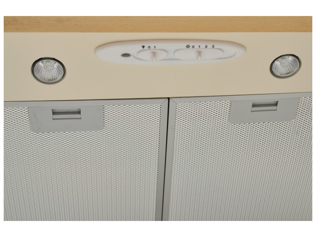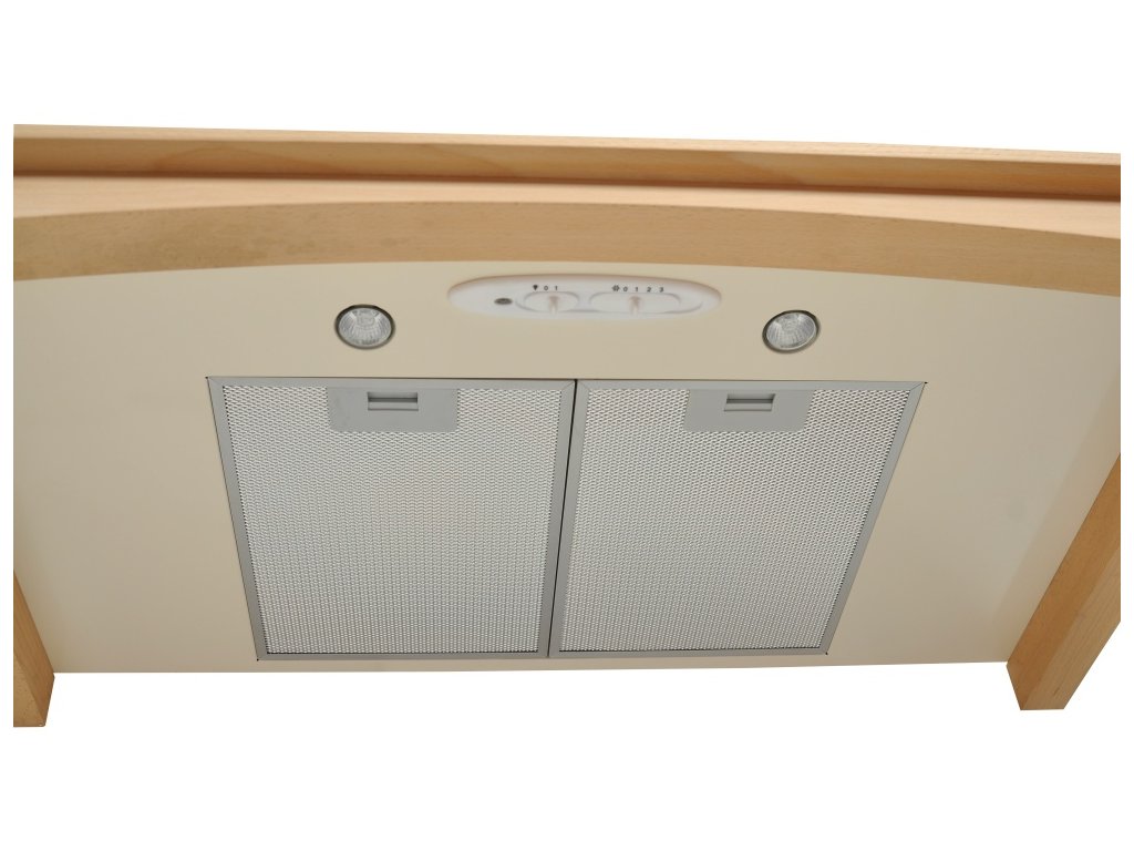 Rustikální komínová digestoř, šíře 90 cm, bílá / nemořená buková lišta, max. výkon 405 m³/h (5 Pa), hlučnost Lw 51 – 61 dB(A), 3 rychlosti, odsávací jednotky mají individuálně vyvažovanou turbínu, motory jsou opatřené vratnými tepelnými pojistkami (při přetížení motoru vypne, po jeho vychladnutí opět sepne), mechanické posuvné ovládání, kovové sendvičové tukové filtry, které lze mýt v myčce, možnost práce v odtahovém i recirkulačním režimu, výstupní průměr 150 mm, Výbava: úsporné LED osvětlení 2 × 2 W, zdarma redukce na 120 mm a zpětná klapka, Benefity: nemořená dřevěná lišta umožňuje individuální barevné doladění třeba podle materiálu kuchyněDoplňkové parametry