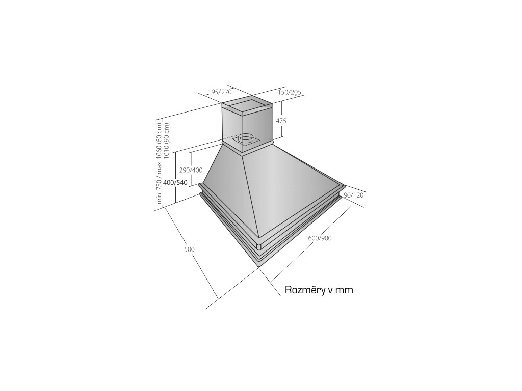 Rustikální komínová digestoř, šíře 90 cm, bílá / nemořená buková lišta, max. výkon 405 m3/h (5 Pa), hlučnost Lw 51 – 61 dB(A), 3 rychlosti, odsávací jednotky mají individuálně vyvažovanou turbínu, motory jsou opatřené vratnými tepelnými pojistkami (při přetížení motoru vypne, po jeho vychladnutí opět sepne), mechanické posuvné ovládání, kovové sendvičové tukové filtry, které lze mýt v myčce, možnost práce v odtahovém i recirkulačním režimu, výstupní průměr 120 mm, Výbava: úsporné LED osvětlení 2 × 2 W, zdarma zpětná klapka, Benefity: nemořená dřevěná lišta umožňuje individuální barevné doladění třeba podle materiálu kuchyněDoplňkové parametry