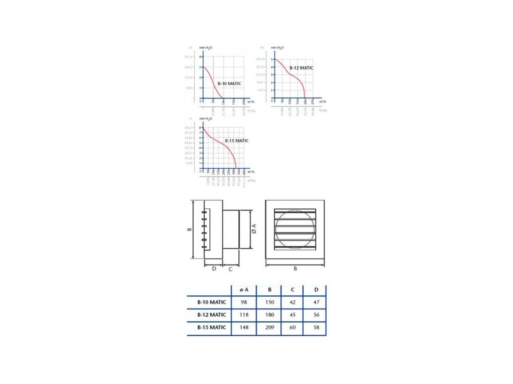 Axiální ventilátor na zeď, do stropu či do okna, pr. 100 mm, 98 m³/h, 43 dB(A), 3 mmH2O (29 Pa), IPX4, žaluzie, doběhový časovač