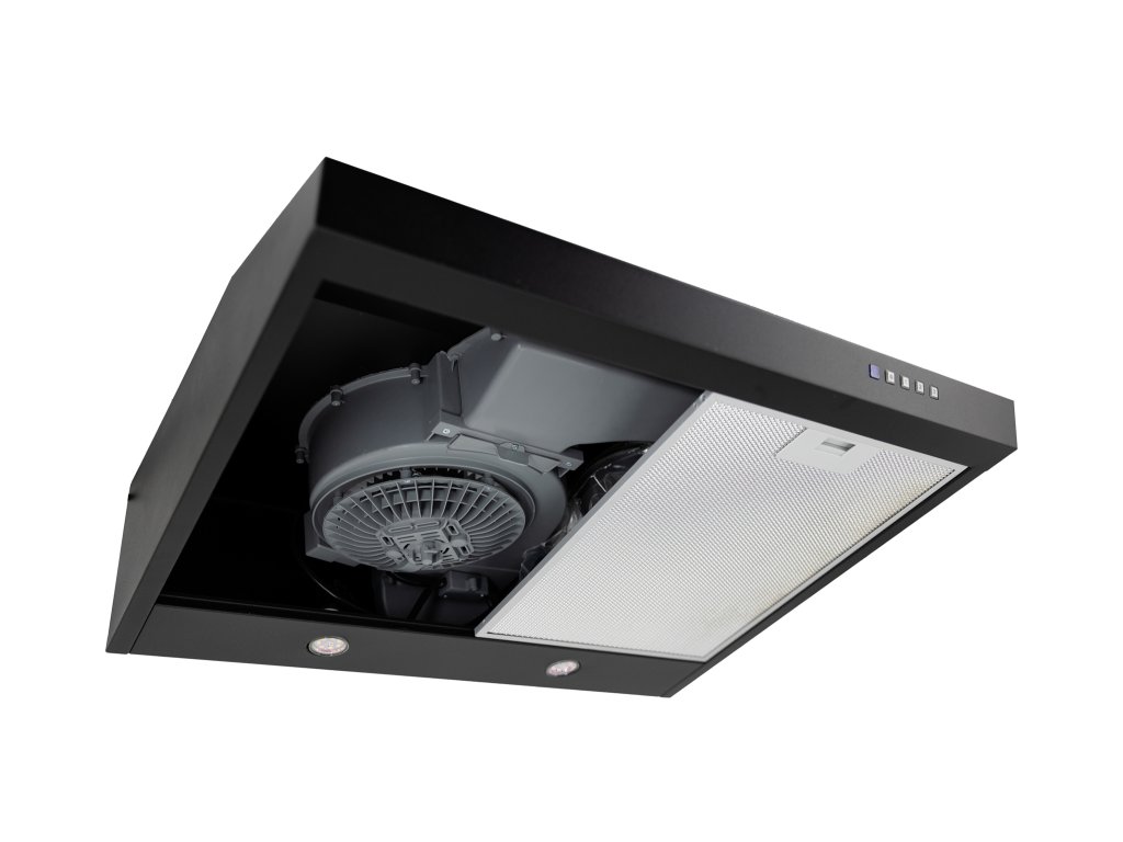 Podskříňková digestoř, šíře 60 cm, černá, max. výkon 286 m3/h (15 Pa), hlučnost Lw 55 – 74 dB(A), 3 rychlosti, elektronické tlačítkové ovládání, kovové sendvičové tukové filtry, které lze mýt v myčce, možnost práce v odtahovém i recirkulačním režimu, výstupní průměr 120 mm, Výbava: ovládání gestem - digestoř lze vypnout bezkontaktně pohybem ruky (přiblížením k čidlu), dalším pohybem ji lze opět zapnout (pamatuje si poslední nastavení před vypnutím gestem), úsporné LED osvětlení 2 × 2 W, zdarma zpětná klapkaDoplňkové parametry