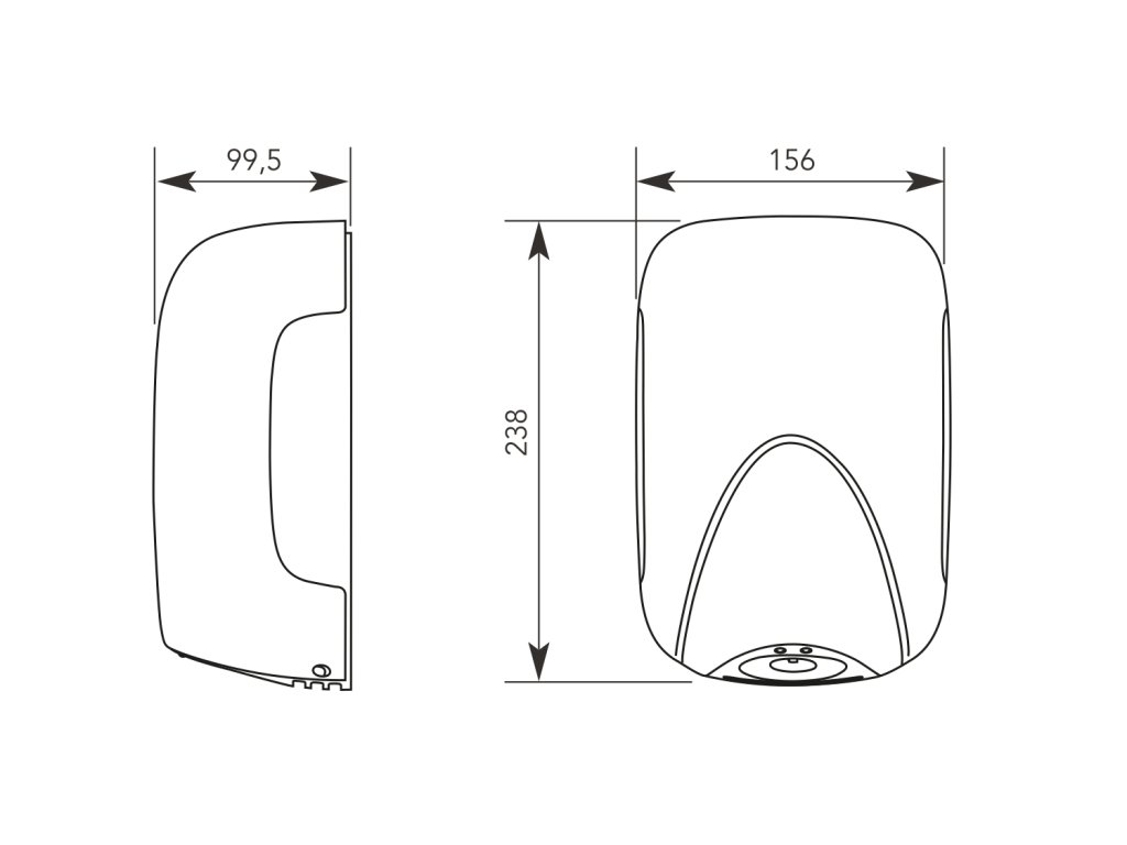 Ultrakompaktní tryskový osoušeč rukou s hloubkou pod 10 cm. Osouší silným proudem vzduchu ve tvaru paprsku. Osuší ruce stejně rychle jako velký osoušeč Úspora až 80 % nákladů v porovnání s ručníky Jednoduchá náhrada za tradiční osoušeč bez nutnosti přesekávat přívodní kabel Osoušeč: 220-240 V / 50-60 Hz, příkon 900 W, IP23, CLASS II, CE - Motor: příkon 400 W, 28.000 ot./min, - Průtok vzduchu: 110 m3/h - Rychlost proudění vzduchu: 200 km/h - Úroveň hluku: 75 dB(A) v tolerančním pásmu +3 dB - Topné těleso: 500 W - Kryt: odolný ABS plast, bílý - Automatické spouštění (infrasnímač) - Hmotnost: 1,2 kg - Rozměry: 156 mm × 238 mm × 99,5 mm (š × v × h)Doplňkové parametry
