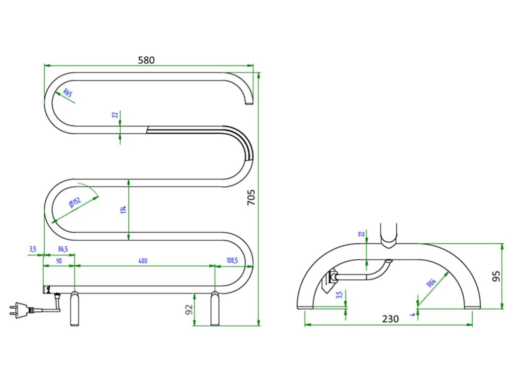 Stojanový elektrický sušák ručníků a osušek dokáže při malé spotřebě energie kvalitně usušit Vaše mokré ručníky. Vhodné pro menší koupelny i kuchyně, kde prostory nedovolují použití žebříkového radiátoru. Vysoký poměr výkonu a spotřeby. Konstruováno pro použití ve vlhkém prostředí. Elektrický sušák udržuje přes den ručníky, utěrky a osušky svěží. Jeho užitné vlastnosti vyniknou zejména v době mimo topné sezóny. Konstrukce sušáku umožňuje jeho stálé zapojení do sítě. Zahřátí na užitnou teplotu trvá cca 15 minut. Sušák není určen k vytápění místnosti, ale pouze k sušení věcí na něm zavěšených. Dvojitá izolace - odolnost sušáku proti tryskající vodě - krytí IP 44, délka přívodní šňůry 2,0 m. Nízká spotřeba el. energie. Materiál – ocelová trubka o průměru 22 mm, s povrchovou úpravou práškovou barvou za horka (komaxit) v barvě bílá lesklá.Doplňkové parametry