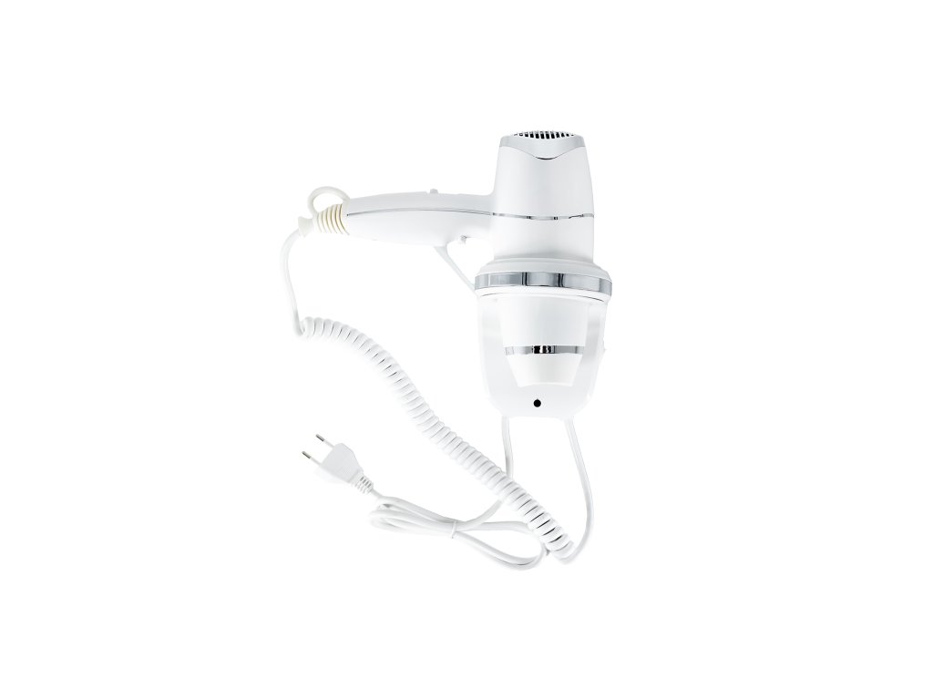 Hotelový fén s montáží na zeď, 3 rychlosti, 220 V - 240 V / 50 - 60 Hz, příkon 1.800 W, přepínač rychlostí a spouštěcí tlačítko na rukojeti, hlavní vypínač na stojánku, materiál ABS, bezpečnost CLASS II, dvojitá izolace, rozměry 220 mm výška × 250 mm šířka × 140 mm hloubka, hmotnost 0,82 kg Upozornění: Hotelové fény jsou určené pro montáž do hotelových koupelen, koupelen v domácnostech a podobných prostor s menší provozní zátěží. Nejsou konstrukčně uzpůsobené k provozu např. ve veřejných bazénech, veřejných saunách nebo podobných prostorách s vyšším provozním zatížením – při použití v takovýchto prostorách nelze uplatnit reklamaci.Doplňkové parametry