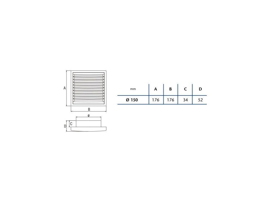 Venkovní mřížka k ventilátorům s průměrem 15 cm – trvale otevřenáDoplňkové parametry