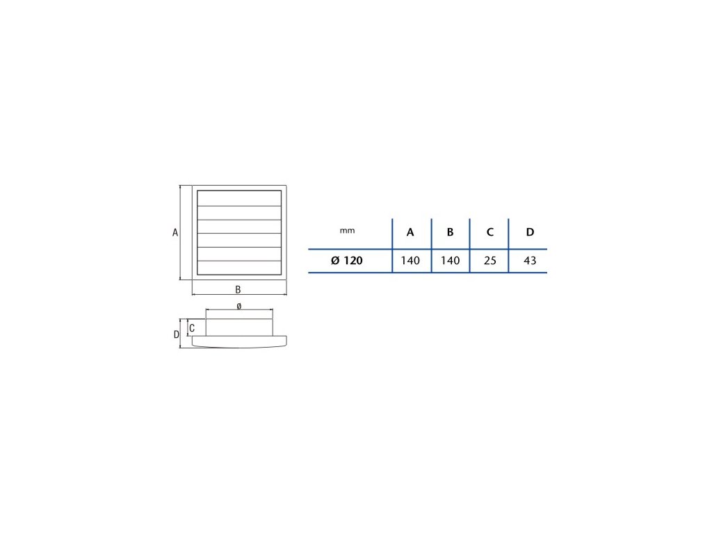 Venkovní mřížka k ventilátorům s průměrem 12 cm – se spádovými žaluziemiDoplňkové parametry