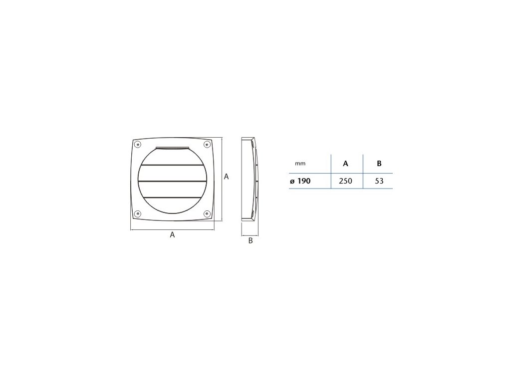 Venkovní mřížka k ventilátorům CATA LHV 190 – se spádovými žaluziemiDoplňkové parametry
