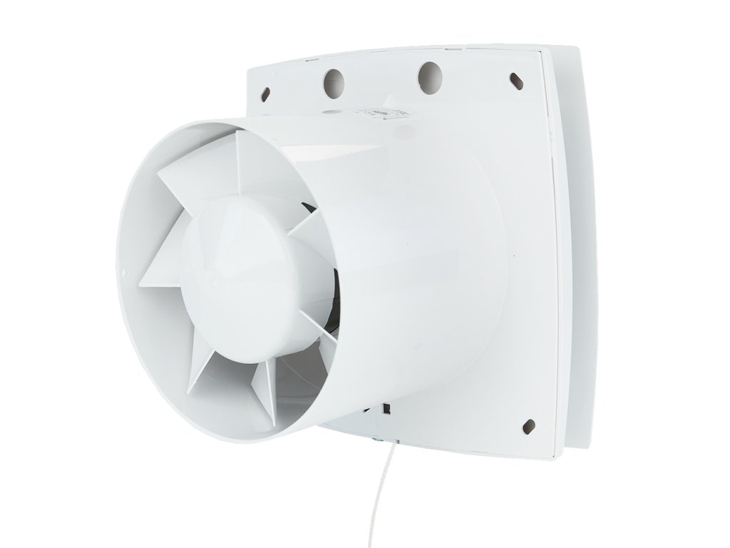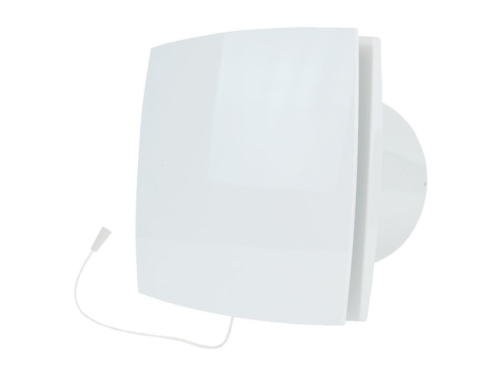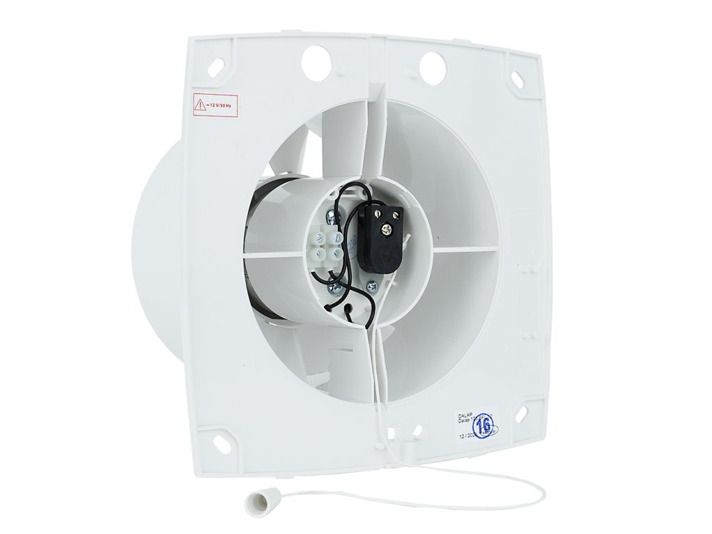 Axiální ventilátor na zeď či do stropu EMPIRE 12V100, bezpečné 12V (50 Hz) provedení do velice vlhkého prostředí, kde hrozí kontakt elektřiny s vodou a pro montáž přímo nad vanu, sprchový kout či umyvadlo, šňůrkový spínač, pr. 100 mm, 77 m3/h, 32 dB(A), 30 Pa, IP34Doplňkové parametry