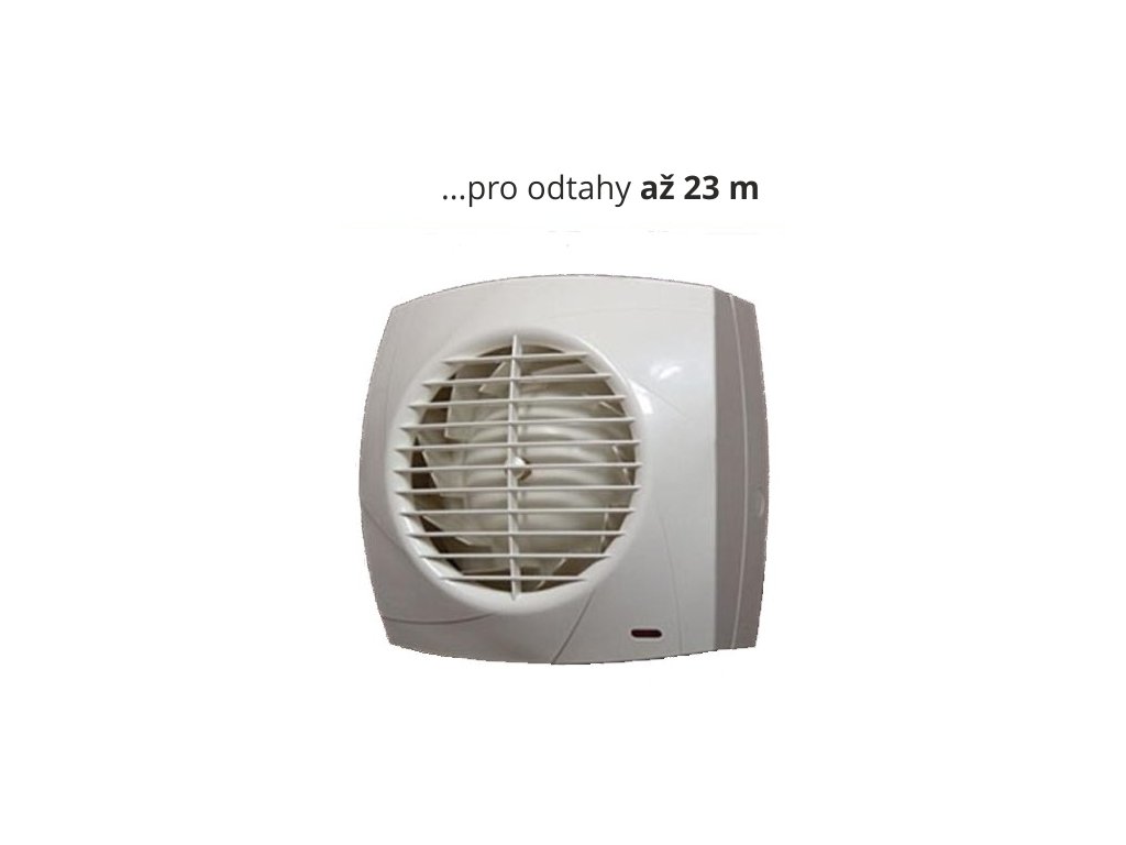 Radiální ventilátor na zeď či do stropu, pr. 100/120 mm (2 příruby součástí dodávky), 270 m3/h, 52 dB(A), 23 mmH2O (225 Pa), IPX4 Pro odtah až 23 m ZDARMA 2 příruby – 100 mm a 120 mm Integrovaná zpětná klapka Antivibrační podložkaDoplňkové parametry