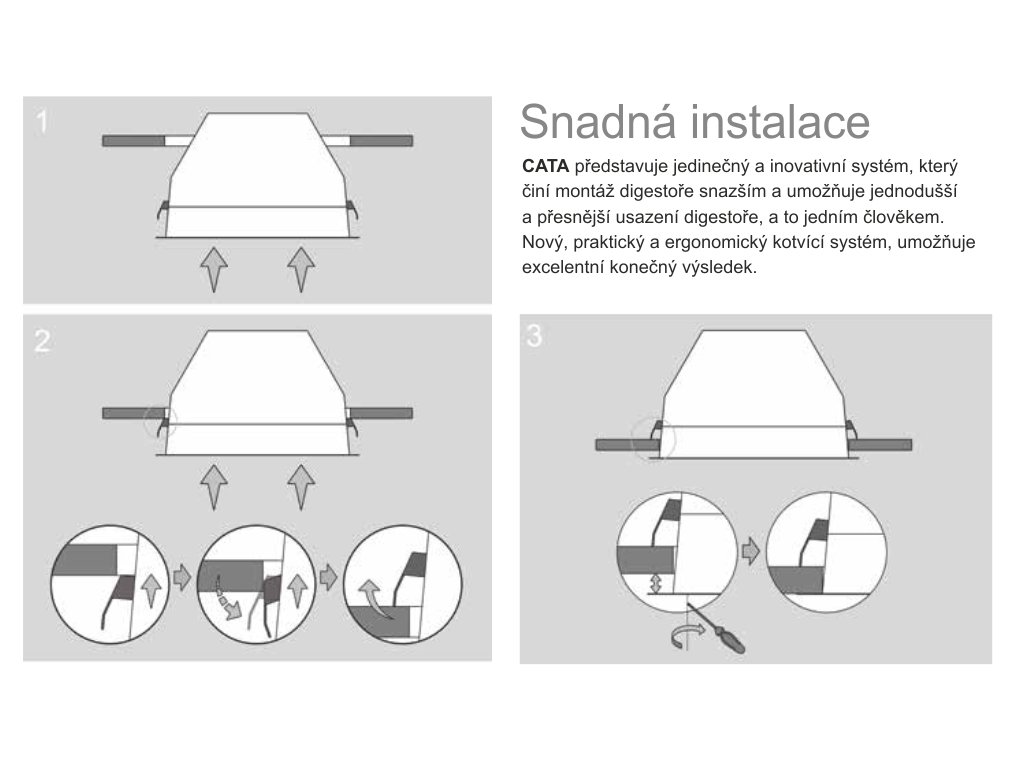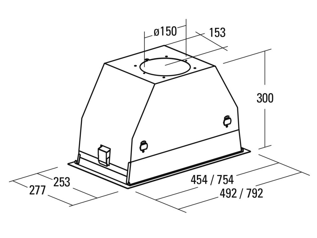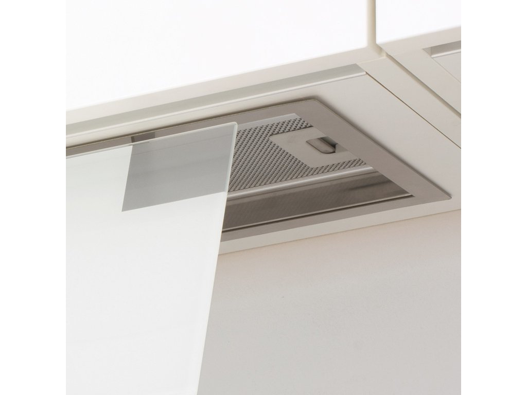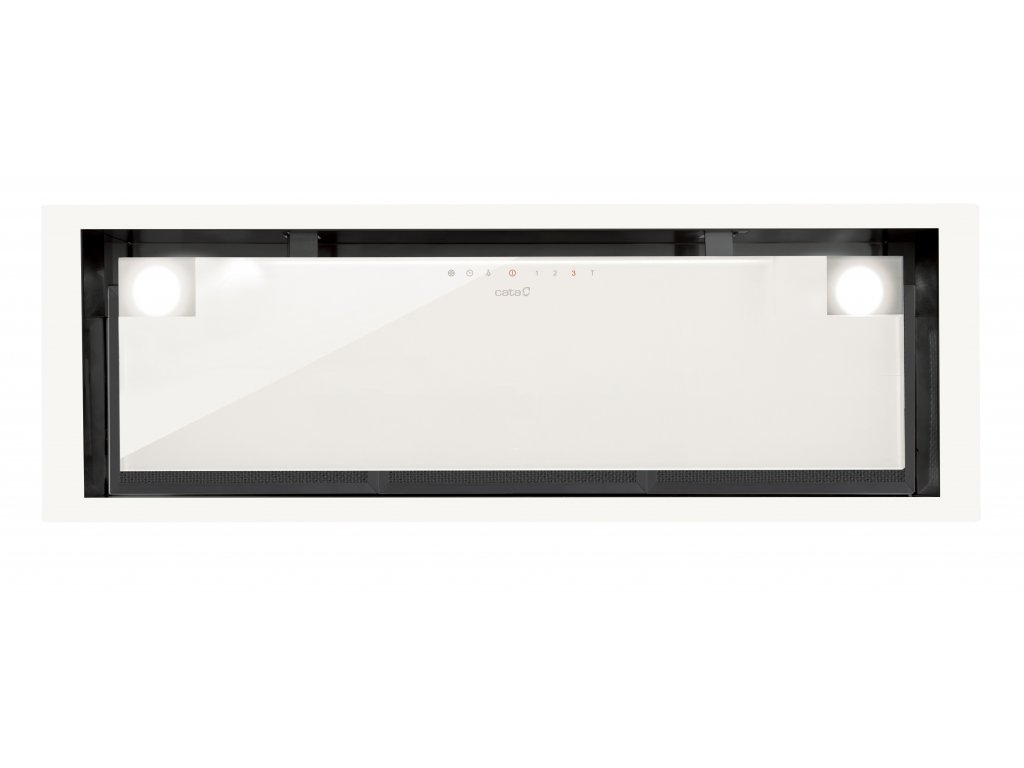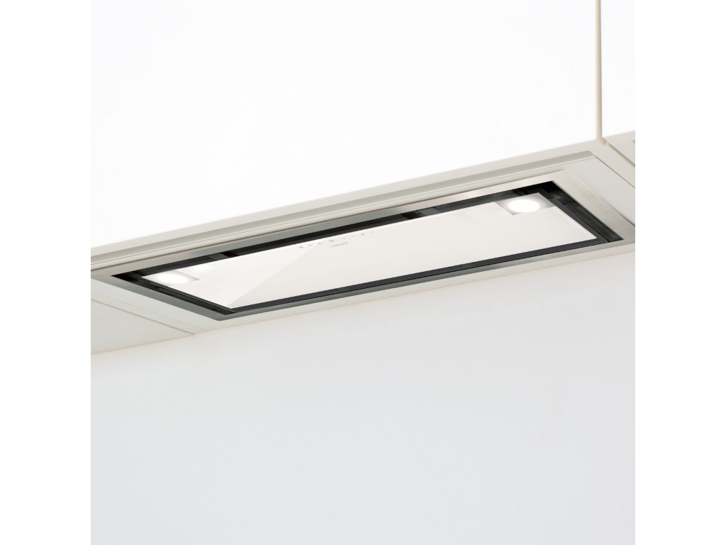 Neviditelná vestavná digestoř, 750 mm (pro 900 mm skříňku), nerez / bílé sklo, přehledné a snadno přístupné dotykové (sensorové) ovládání na výklopném spodním panelu, 3 rychlosti, max. výkon 710 m³/h (5 Pa), hlučnost Lw 40 – 67 dB(A), max. tlak 450 Pa, 15 min. časovač, kovové sendvičové tukové filtry, které lze mýt v myčce, výstupní průměr 150 mm, možnost práce v odtahovém i recirkulačním režimu, snadná montáž, Výbava: úsporné LED osvětlení 2 × 4 W s nastavitelnou intenzitou jasu. Recirkulační režim u vestavných digestoří: Digestoř se osadí uhlíkovým pachovým filtrem. Přefiltrovaný vzduch se z digestoře odvádí obdobně jako u odtahového režimu trubkou, která prochází celou skříňkou. Tato trubka však neústí kolenem do zdi, ale nad skříňku, kde ji doporučujeme zakončit mřížkou. Pro výrobu skříňky je směrodatný rozměrový nákres a údaje v něm uvedené. Fotografie digestoří jsou ilustrační.Doplňkové parametry