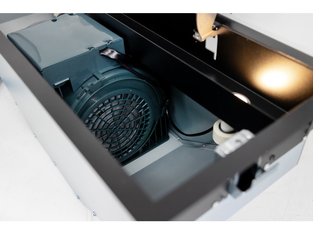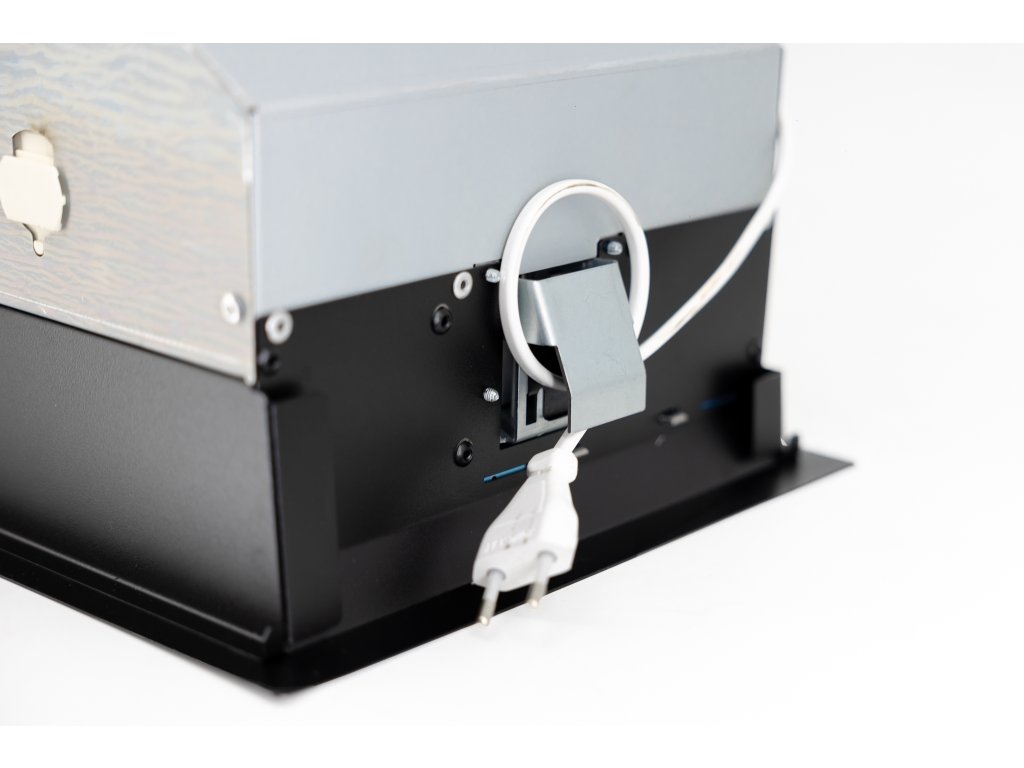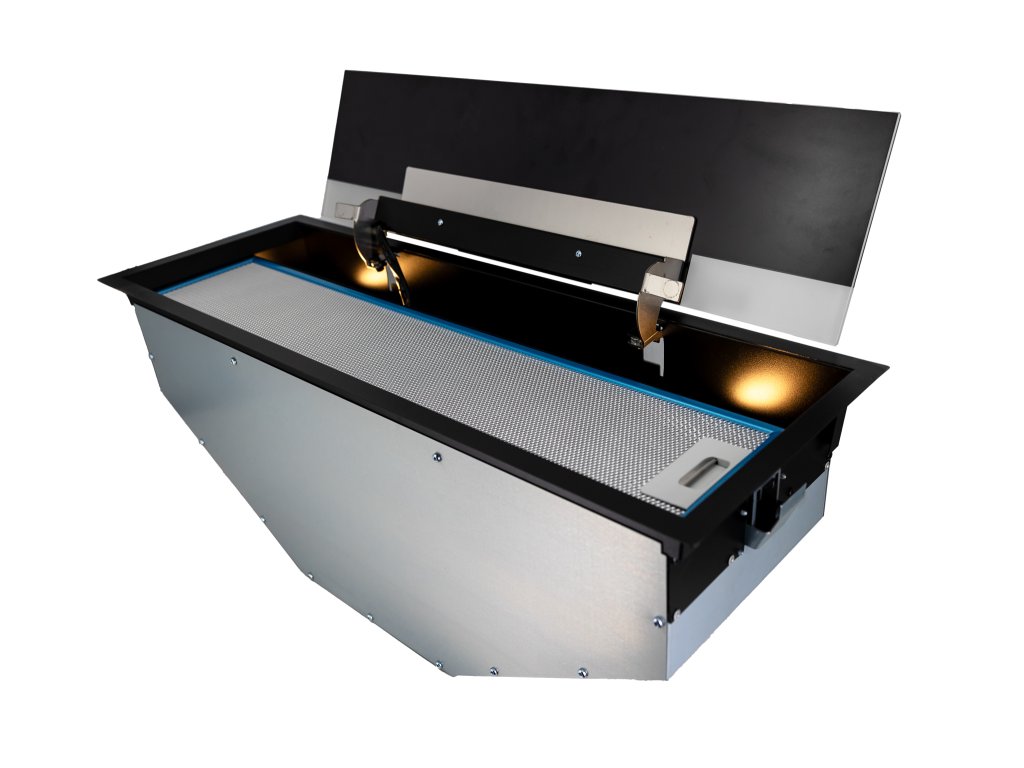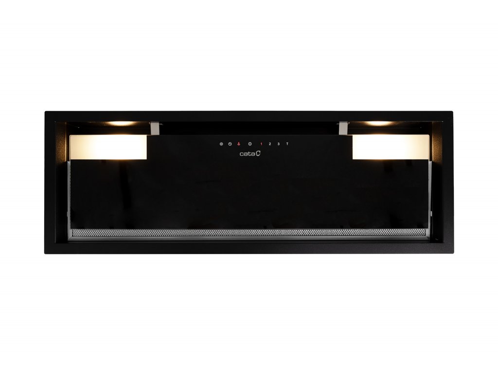 Neviditelná vestavná digestoř, 750 mm (pro 900 mm skříňku), nerez / černé sklo, přehledné a snadno přístupné dotykové (sensorové) ovládání na výklopném spodním panelu, 3 rychlosti, max. výkon 710 m³/h (5 Pa), hlučnost Lw 40 – 67 dB(A), max. tlak 450 Pa, 15 min. časovač, kovové sendvičové tukové filtry, které lze mýt v myčce, výstupní průměr 150 mm, možnost práce v odtahovém i recirkulačním režimu, snadná montáž, Výbava: úsporné LED osvětlení 2 × 4 W s nastavitelnou intenzitou jasu. Recirkulační režim u vestavných digestoří: Digestoř se osadí uhlíkovým pachovým filtrem. Přefiltrovaný vzduch se z digestoře odvádí obdobně jako u odtahového režimu trubkou, která prochází celou skříňkou. Tato trubka však neústí kolenem do zdi, ale nad skříňku, kde ji doporučujeme zakončit mřížkou. Pro výrobu skříňky je směrodatný rozměrový nákres a údaje v něm uvedené. Fotografie digestoří jsou ilustrační.Doplňkové parametry