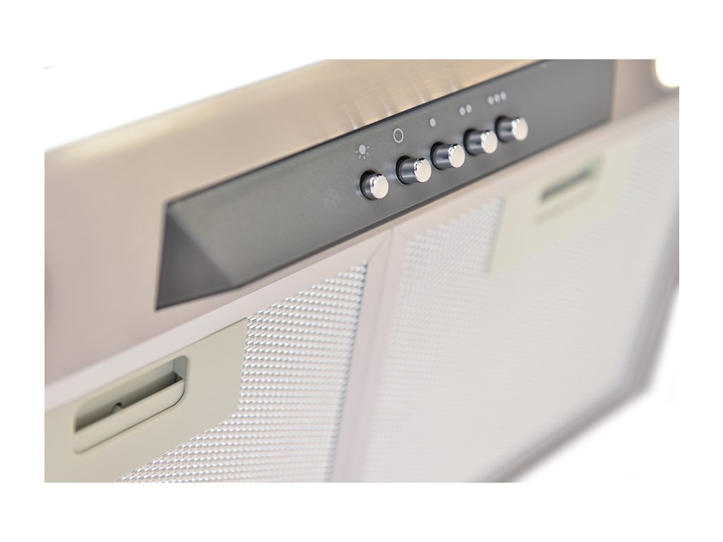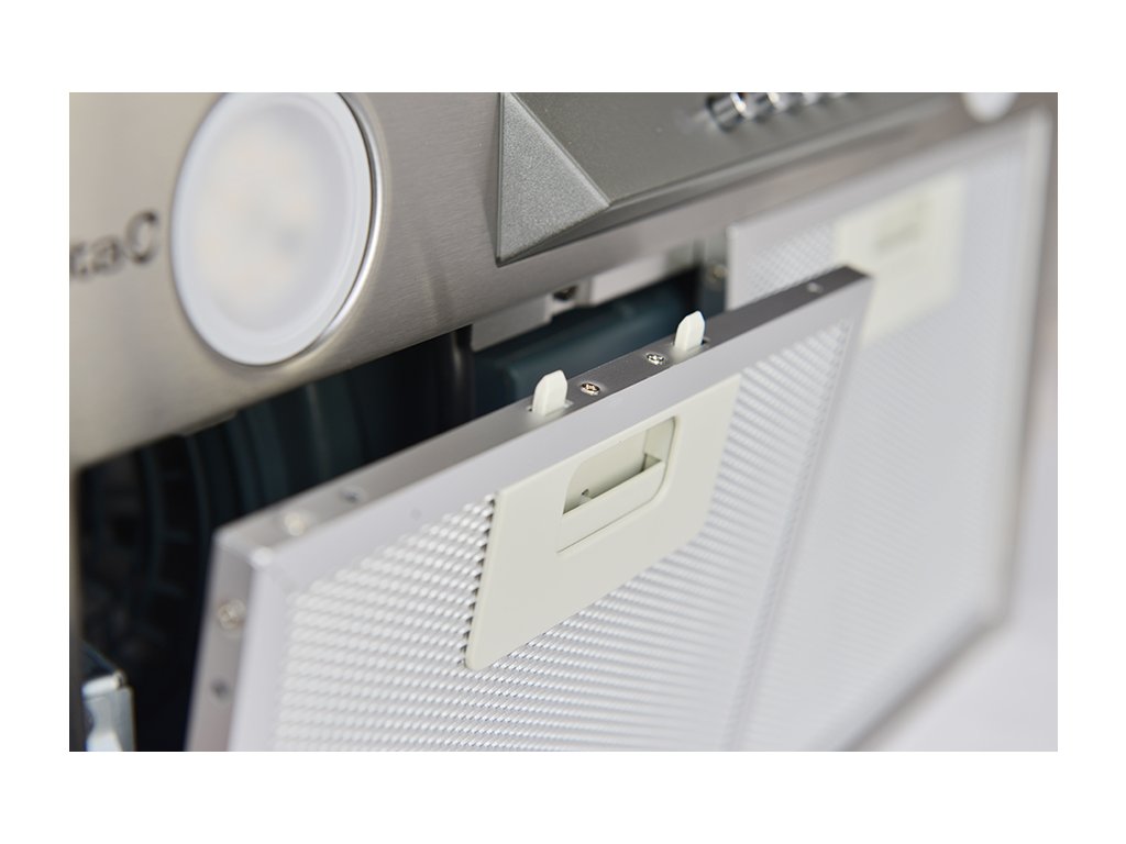 Vestavná, 450 mm (do 600 mm skříňky), nerez, 1 motor BT2 200 W, 3 rychlosti, 600 m3/h (5 Pa), max. hlučnost Lw 65 dB(A), max. tlak 405 Pa. Recirkulační režim u vestavných digestoří: Digestoř se osadí uhlíkovým pachovým filtrem. Přefiltrovaný vzduch se z digestoře odvádí obdobně jako u odtahového režimu trubkou, která prochází celou skříňkou. Tato trubka však neústí kolenem do zdi, ale nad skříňku, kde ji doporučujeme zakončit mřížkou. Pro výrobu skříňky je směrodatný rozměrový nákres a údaje v něm uvedené. Fotografie digestoří jsou ilustrační.Doplňkové parametry