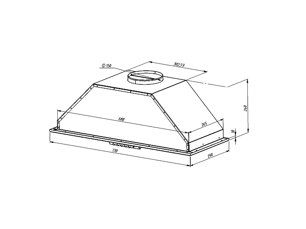 Vestavná digestoř, šíře 80 cm, nerez, max. výkon 405 m3/h (5 Pa), hlučnost Lw 51 – 61 dB(A), 3 rychlosti, odsávací jednotky mají individuálně vyvažovanou turbínu, motory jsou opatřené vratnými tepelnými pojistkami (při přetížení motoru vypne, po jeho vychladnutí opět sepne), mechanické tlačítkové ovládání, kovové sendvičové tukové filtry, které lze mýt v myčce, možnost práce v odtahovém i recirkulačním režimu, výstupní průměr 150 mm, Výbava: úsporné LED osvětlení 2 × 2 W, zdarma redukce na 120 mm a zpětná klapka Recirkulační režim u vestavných digestoří: Digestoř se osadí uhlíkovým pachovým filtrem. Přefiltrovaný vzduch se z digestoře odvádí obdobně jako u odtahového režimu trubkou, která prochází celou skříňkou. Tato trubka však neústí kolenem do zdi, ale nad skříňku, kde ji doporučujeme zakončit mřížkou. Pro výrobu skříňky je směrodatný rozměrový nákres a údaje v něm uvedené. Fotografie digestoří jsou ilustrační.Doplňkové parametry