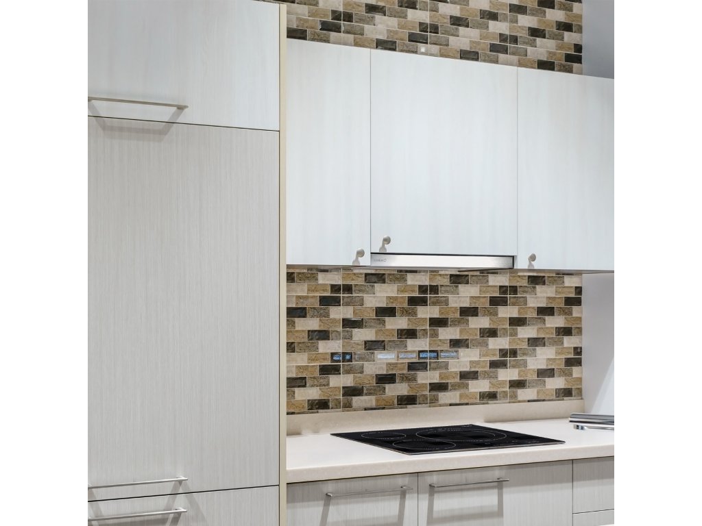 Vestavná výsuvná, 900 mm, nerez lišta s povrchem DurAlum, 1 motor 80 W, 2 rychlosti, 340 m3/h (15 Pa), max. tlak 194 Pa, max. hlučnost Lw 55 dB. Recirkulační režim u vestavných digestoří: Digestoř se osadí uhlíkovým pachovým filtrem. Přefiltrovaný vzduch se z digestoře odvádí obdobně jako u odtahového režimu trubkou, která prochází celou skříňkou. Tato trubka však neústí kolenem do zdi, ale nad skříňku, kde ji doporučujeme zakončit mřížkou. Pro výrobu skříňky je směrodatný rozměrový nákres a údaje v něm uvedené. Fotografie digestoří jsou ilustrační.Doplňkové parametry