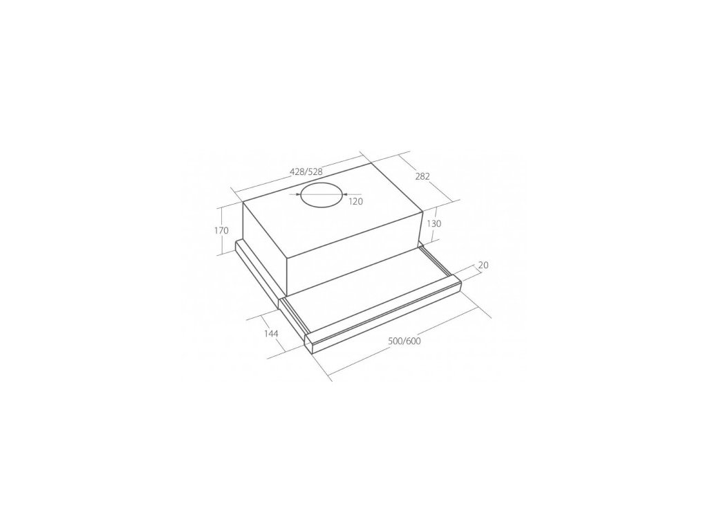 Výsuvná digestoř s listou z bílého skla a s dotykovým ovládáním: Maximální výkon 344 m³/h (15 Pa), 3 rychlosti - hlučnost Lw při max. výkonu je 69 dB(A) - odsávací jednotky mají individuálně vyvažovanou turbínu - motory jsou opatřené vratnými tepelnými pojistkami (při přetížení motoru vypne, po jeho vychladnutí opět sepne) - kovové sendvičové tukové filtry, které lze mýt v myčce - výstupní průměr 120 mm – zdarma zpětná klapka - možnost práce v odtahovém i v recirkulačním režimu– funkce dovětrání (15 min. doběhový časovač) Recirkulační režim u vestavných digestoří: Digestoř se osadí uhlíkovým pachovým filtrem. Přefiltrovaný vzduch se z digestoře odvádí obdobně jako u odtahového režimu trubkou, která prochází celou skříňkou. Tato trubka však neústí kolenem do zdi, ale nad skříňku, kde ji doporučujeme zakončit mřížkou. Pro výrobu skříňky je směrodatný rozměrový nákres a údaje v něm uvedené. Fotografie digestoří jsou ilustrační.Doplňkové parametry