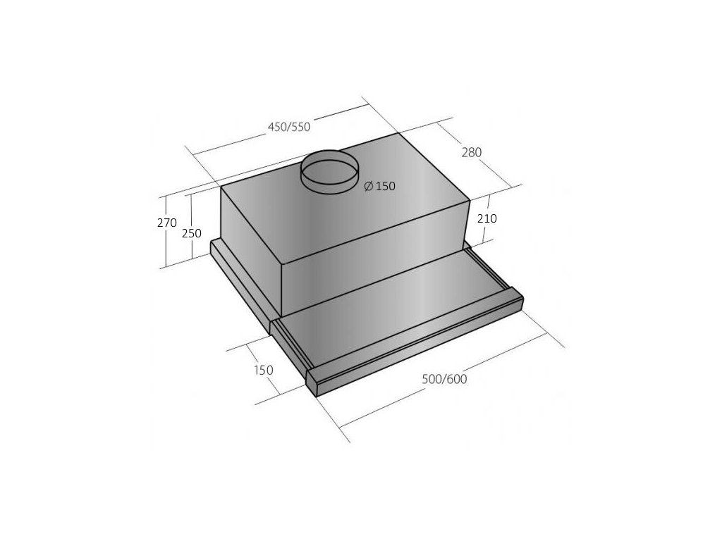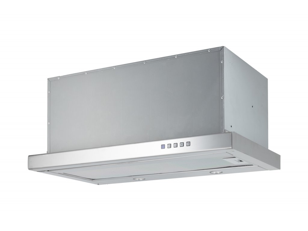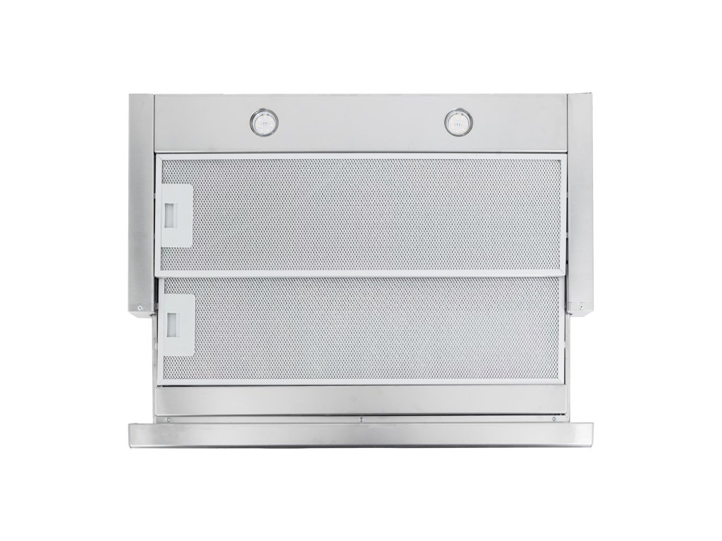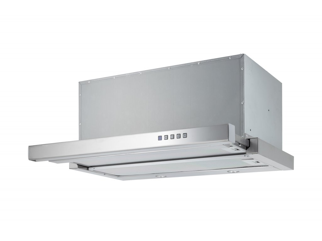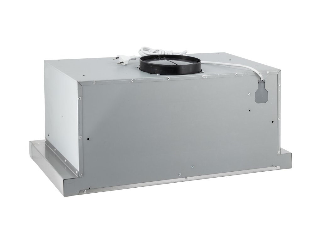 Vestavná digestoř výsuvná, šíře 50 cm, nerez s nerez lištou (šedý korpus), max. výkon 692 m³/h (5 Pa), hlučnost Lw 50 – 70 dB(A), 3 rychlosti, odsávací jednotky mají individuálně vyvažovanou turbínu, motory jsou opatřené vratnými tepelnými pojistkami (při přetížení motoru vypne, po jeho vychladnutí opět sepne), kovové sendvičové tukové filtry, které lze mýt v myčce, možnost práce v odtahovém i recirkulačním režimu, Výbava: úsporné LED osvětlení 2 × 2 W, elektronické ovládání s doběhovým časovačem, zdarma dálkový ovladač i s bateriemi, zdarma redukce na 120 mm a zpětná klapka, Benefity: používání dálkového ovládání usnadňuje údržbu digestoře (méně otisků na digestoři = snazší čištění), ovladač je opatřený magnetem, lze jej přichytit třeba na dveře lednice (může být snadno po ruce, nikam nezapadne) Recirkulační režim u vestavných digestoří: Digestoř se osadí uhlíkovým pachovým filtrem. Přefiltrovaný vzduch se z digestoře odvádí obdobně jako u odtahového režimu trubkou, která prochází celou skříňkou. Tato trubka však neústí kolenem do zdi, ale nad skříňku, kde ji doporučujeme zakončit mřížkou. Pro výrobu skříňky je směrodatný rozměrový nákres a údaje v něm uvedené. Fotografie digestoří jsou ilustrační.Doplňkové parametry