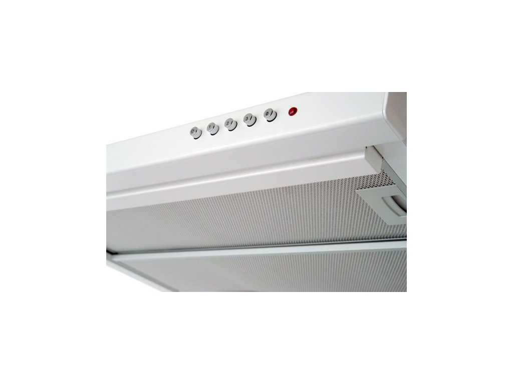 Vestavná digestoř výsuvná, šíře 60 cm, bílá, max. výkon 338 m3/h (15 Pa), hlučnost Lw 56 – 71 dB(A), 3 rychlosti, odsávací jednotky mají individuálně vyvažovanou turbínu, motory jsou opatřené vratnými tepelnými pojistkami (při přetížení motoru vypne, po jeho vychladnutí opět sepne), mechanické posuvné ovládání, kovové sendvičové tukové filtry, které lze mýt v myčce, možnost práce v odtahovém i recirkulačním režimu, Výbava: úsporné LED osvětlení 2 × 2 W, zdarma zpětná klapka Recirkulační režim u vestavných digestoří: Digestoř se osadí uhlíkovým pachovým filtrem. Přefiltrovaný vzduch se z digestoře odvádí obdobně jako u odtahového režimu trubkou, která prochází celou skříňkou. Tato trubka však neústí kolenem do zdi, ale nad skříňku, kde ji doporučujeme zakončit mřížkou. Pro výrobu skříňky je směrodatný rozměrový nákres a údaje v něm uvedené. Fotografie digestoří jsou ilustrační.Doplňkové parametry