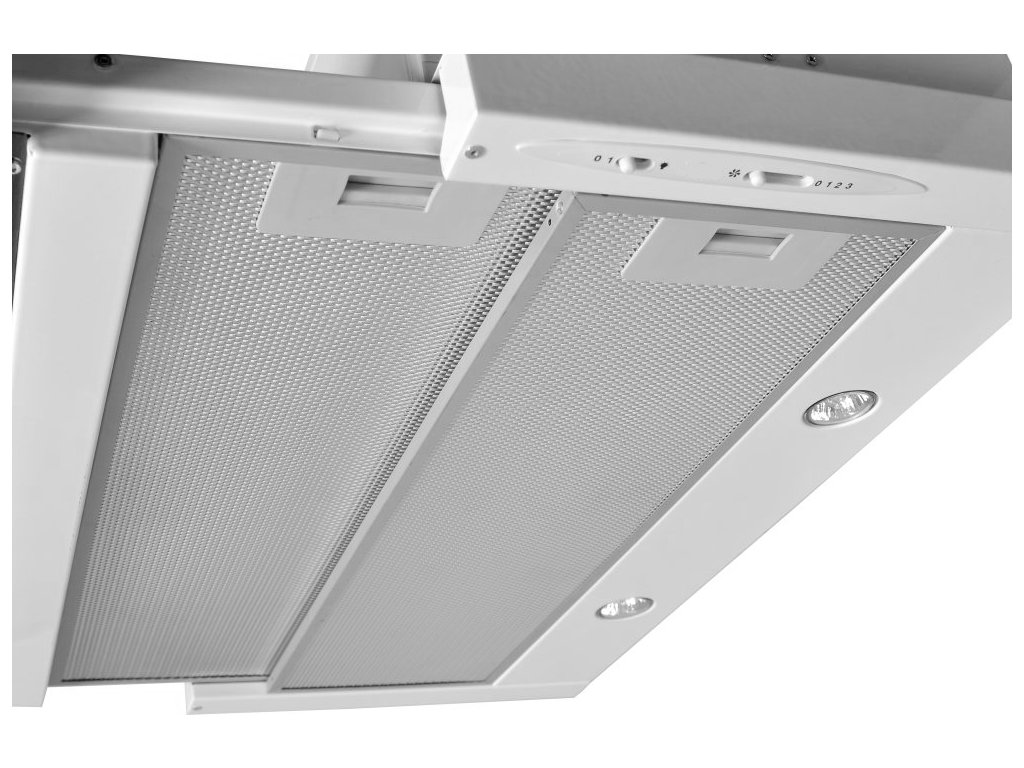 Vestavná digestoř výsuvná, šíře 50 cm, šedá s nerez lištou, max. výkon 266 m3/h (15 Pa), hlučnost Lw 54 – 62 dB(A), 3 rychlosti, odsávací jednotky mají individuálně vyvažovanou turbínu, motory jsou opatřené vratnými tepelnými pojistkami (při přetížení motoru vypne, po jeho vychladnutí opět sepne), mechanické posuvné ovládání, kovové sendvičové tukové filtry, které lze mýt v myčce, možnost práce v odtahovém i recirkulačním režimu, Výbava: úsporné LED osvětlení 2 × 2 W, zdarma zpětná klapka Recirkulační režim u vestavných digestoří: Digestoř se osadí uhlíkovým pachovým filtrem. Přefiltrovaný vzduch se z digestoře odvádí obdobně jako u odtahového režimu trubkou, která prochází celou skříňkou. Tato trubka však neústí kolenem do zdi, ale nad skříňku, kde ji doporučujeme zakončit mřížkou. Pro výrobu skříňky je směrodatný rozměrový nákres a údaje v něm uvedené. Fotografie digestoří jsou ilustrační.Doplňkové parametry
